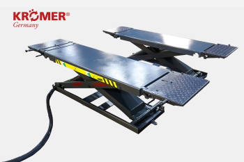 Le pont élévateur à ciseaux convient très bien aux travaux sous le véhicule et aux mesures de l'essieu. Chez Krömer, nous proposons des ponts élévateurs mobiles à ciseaux à faible course, des ponts élévateurs à ciseaux doubles et des ponts de réception.